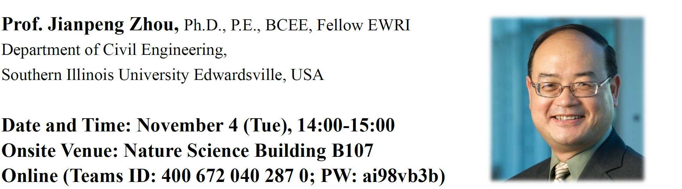 | Onsite venue: Nature Science Building B107, Univ. |