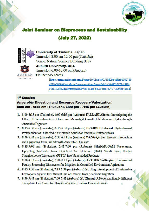 Joint Seminar on Bioprocess and Sustainability [July 26-27, 2023]